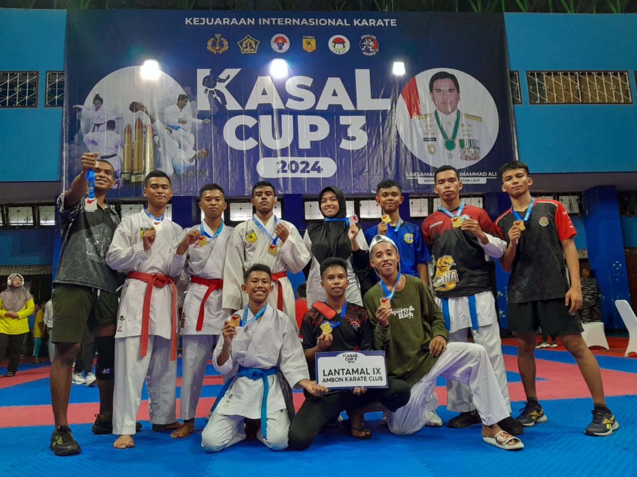 MalukuSport – Keberhasilan Pangkalan Utama TNI Angkatan Laut (Lantamal) IX Ambon yang sukses borong medali emas,pada Kejuaraan Karate Kasal Cup Ke-3 Tahun 2024 di Jakarta tak lepas dari kepemimpinan Danlantamal IX Ambon Brigjen TNI (Mar) Said Latuconsina M.M., M.T., M.Tr. Opsla.